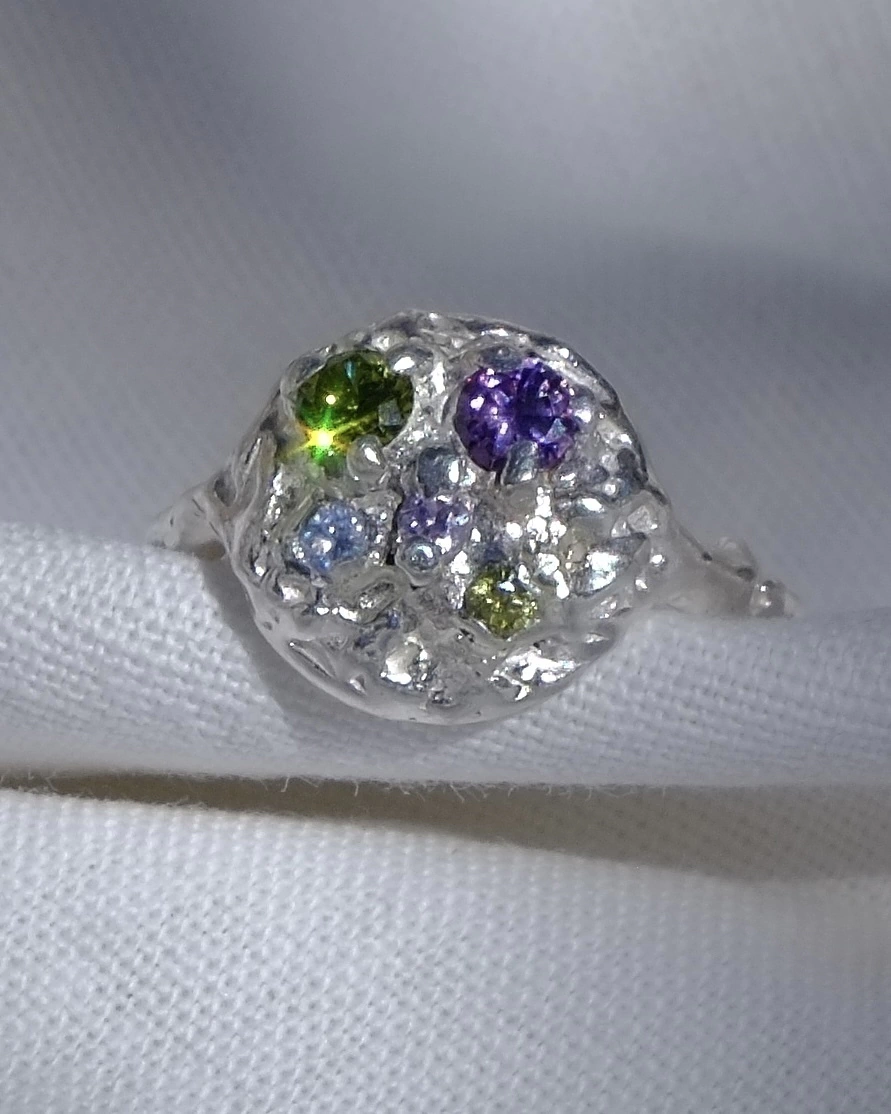 Este anillo se diseña especialmente para vos. Contanos tu historia y crearemos una pieza única con la cantidad de piedras, tamaños y colores que elijas.
