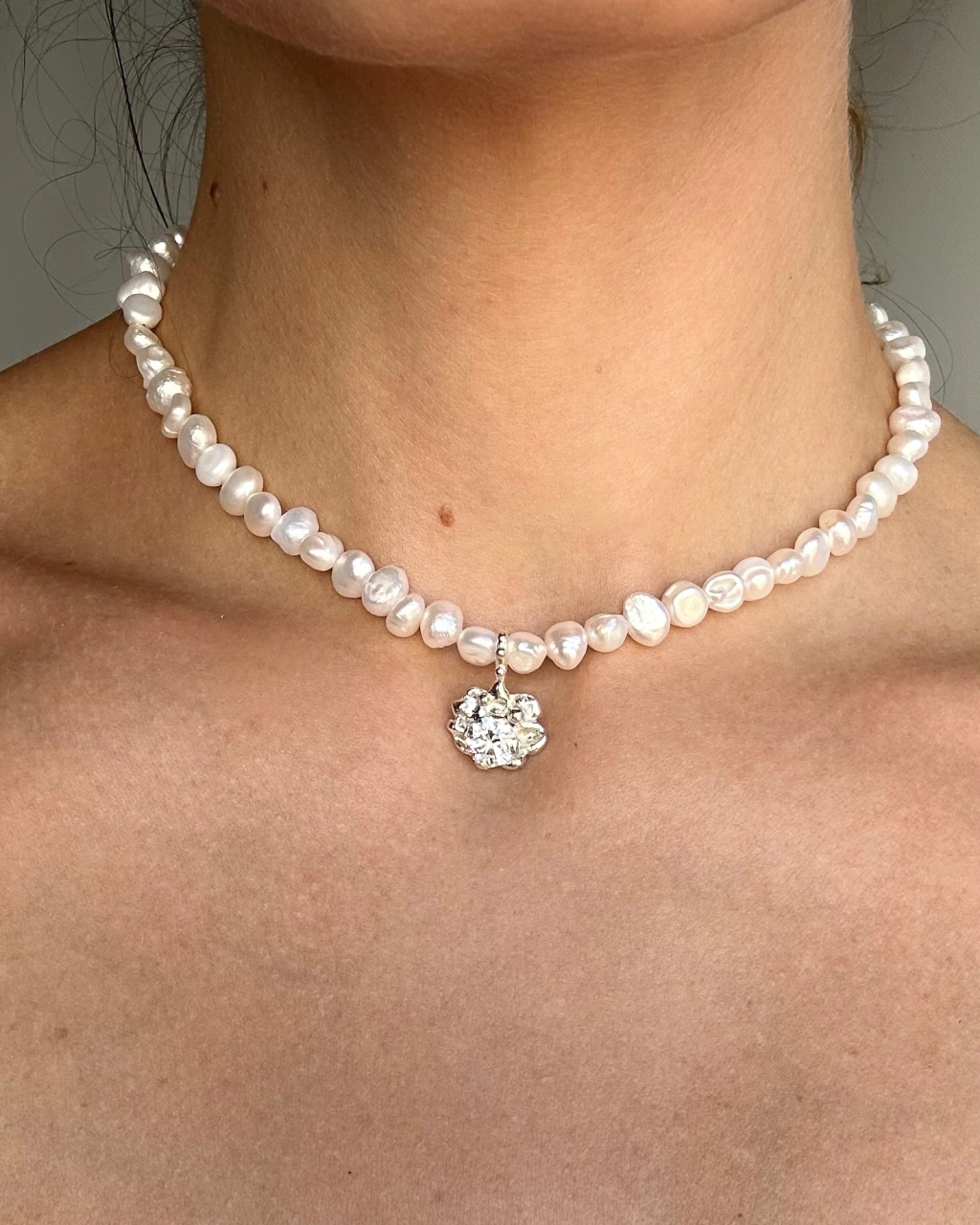 Esta hermosa gargantilla de perlas de río combinada con el Dije Olas aporta una luminosidad única a tu look. Ideal tanto para el día a día como para ocasiones especiales, ¡vos decidís cómo lucirla!