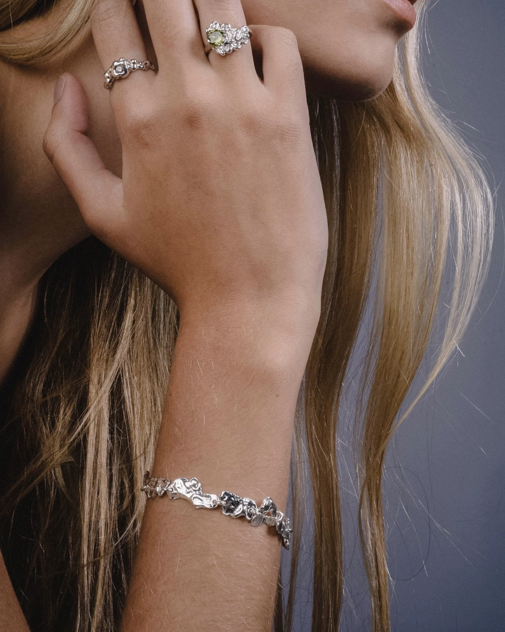 Con su forma orgánica y suave, esta pulsera complementa a la perfección la Gargantilla Agua. Su diseño versátil te permite usarla tanto para el día a día como para una ocasión especial. Súper cómoda, delicada pero robusta, es una pieza que destaca sin esfuerzo.